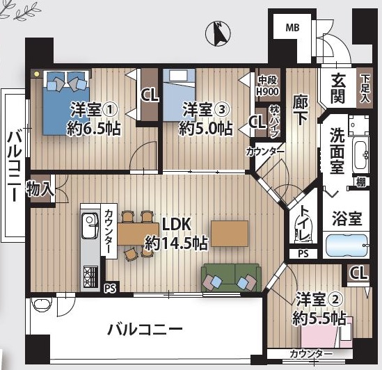 | バルコニー面積 | 【南側:12.06㎡】 |