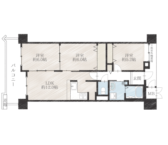 | バルコニー面積 | 【南側:11.83㎡】 |