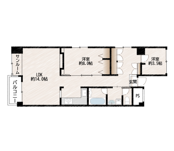 | バルコニー面積 | 【東南側:3.64㎡】 |