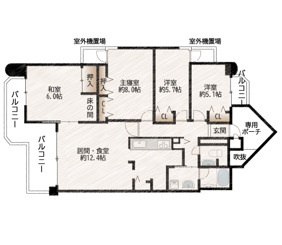 | 専有面積 | 壁芯|96.41㎡ |