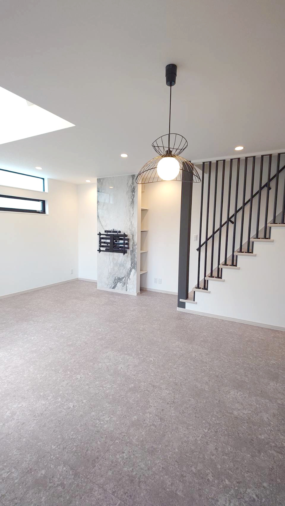 ◇2階のLDKは約19帖あり、ソファーやダイニングテーブル、収納家具などを自由に配置でき、ライフスタイルに合わせたインテリア設計が可能です。