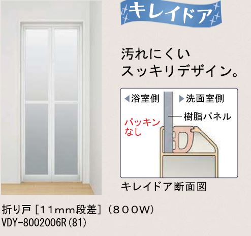 カビの発生を抑え、パッキン内部までカビが入り込みにくい材料を使用しているので清掃が簡単な浴室ドア。
