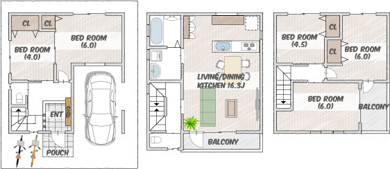 家族のライフスタイル、趣味など、家族みんなの希望に合わせて下記間取りをカスタマイズしていただいて大丈夫です。自分らしさを間取りに反映し、快適で満足のいく住まいを実現してください。