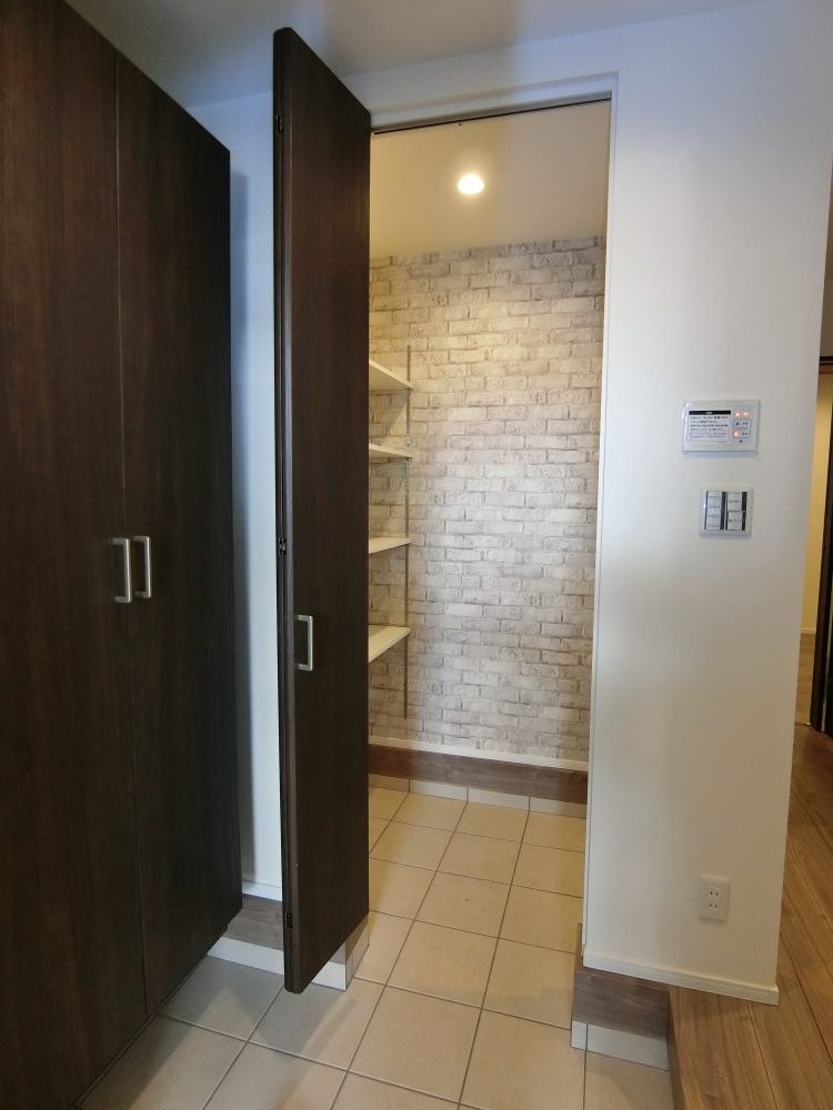 玄関を開けた時、ごちゃごちゃしている玄関てどうですか?・・・急な来客時は特に慌ててとりあえずスッキリしてるように見せてみる・・・片づけても片づけても、気づくと靴やら何やらが散乱しがち・・・そんな玄関をすっきりさせてくれるのがシューズクローク!靴だけではありません、ベビーカーや、アウトドアグッズなんかも収納してしまいましょう(広さにもよります)玄関の印象がガラリと変わりますよ。